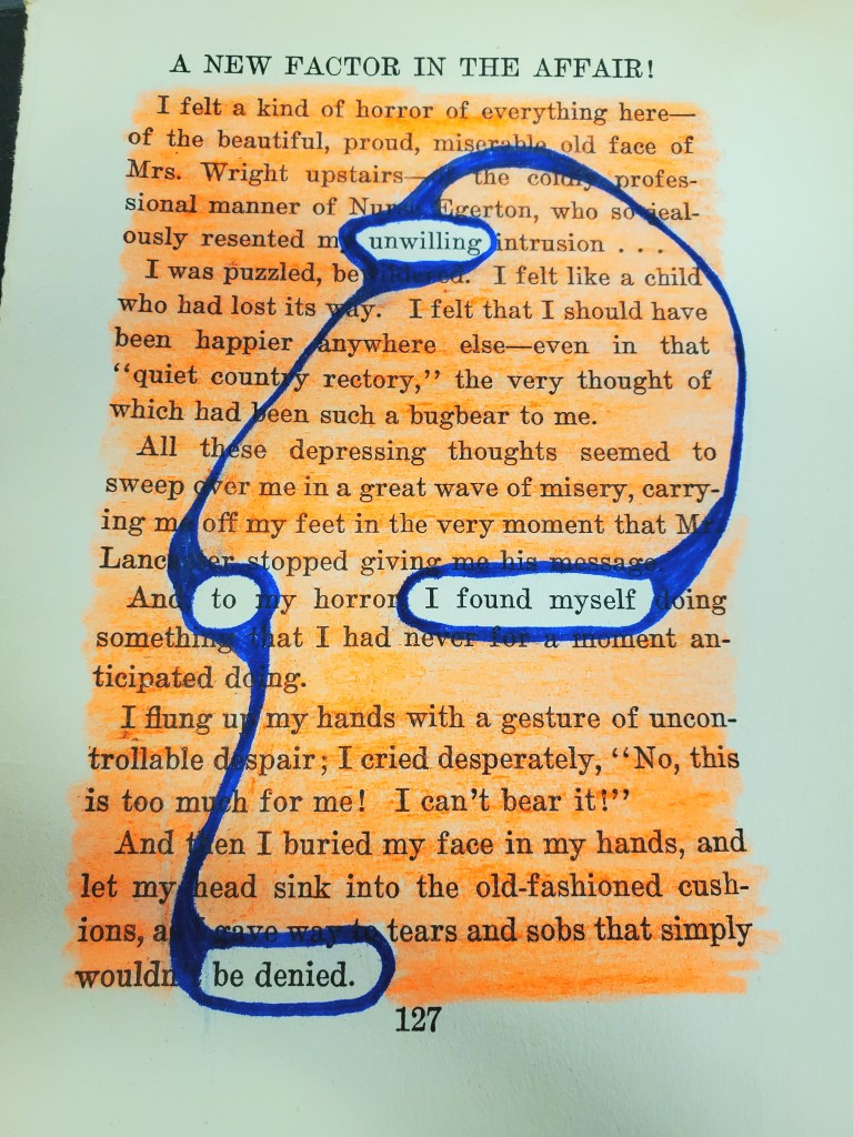 A New Factor in the Affair! Posted bypostpoeticalJanuary 26, 2021Posted inAltered Book PagesTags:altered book, denial, Mr. Right, poem I found myself unwilling to be denied. From The Wrong Mr. Right. Bertha Ruck. New York: Dodd, Mead, 1922. Share this: Click to share on X (Opens in new window) X Click to share on Facebook (Opens in new window) Facebook Like Loading... Related