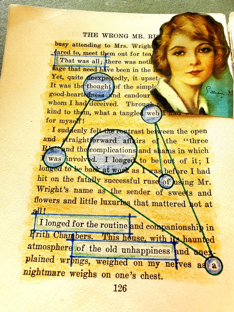 That was all; Posted bypostpoeticalFebruary 11, 2021February 12, 2021Posted inAltered Book PagesTags:1920s, altered book, old unhappiness, thought, web Berta Ruck, The Wrong Mr. Right Share this: Click to share on X (Opens in new window) X Click to share on Facebook (Opens in new window) Facebook Like Loading... Related