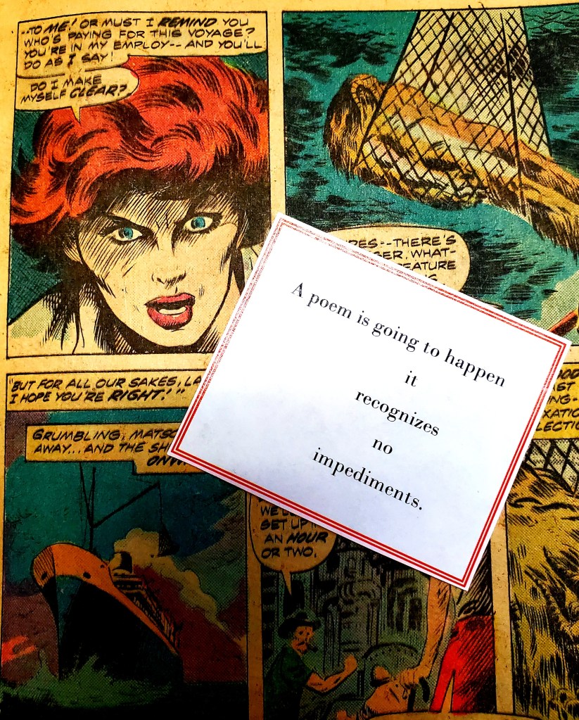 A poem is going to happen Posted bypostpoeticalFebruary 26, 2021Posted inA poem is going to happenTags:A poem is going to happen, comics, impediments, man-thing it recognizes no impediments. Man-Thing, January, 1975. Marvel Comics. Share this: Click to share on X (Opens in new window) X Click to share on Facebook (Opens in new window) Facebook Like Loading... Related