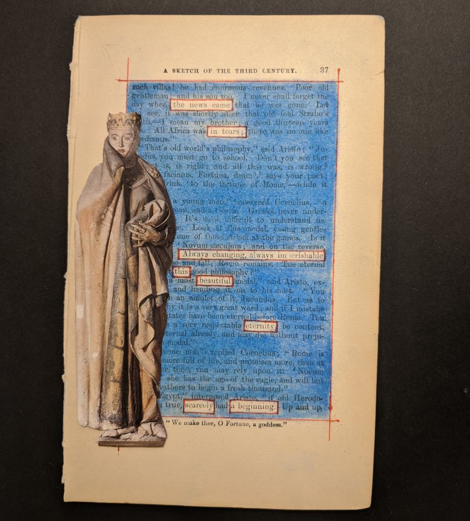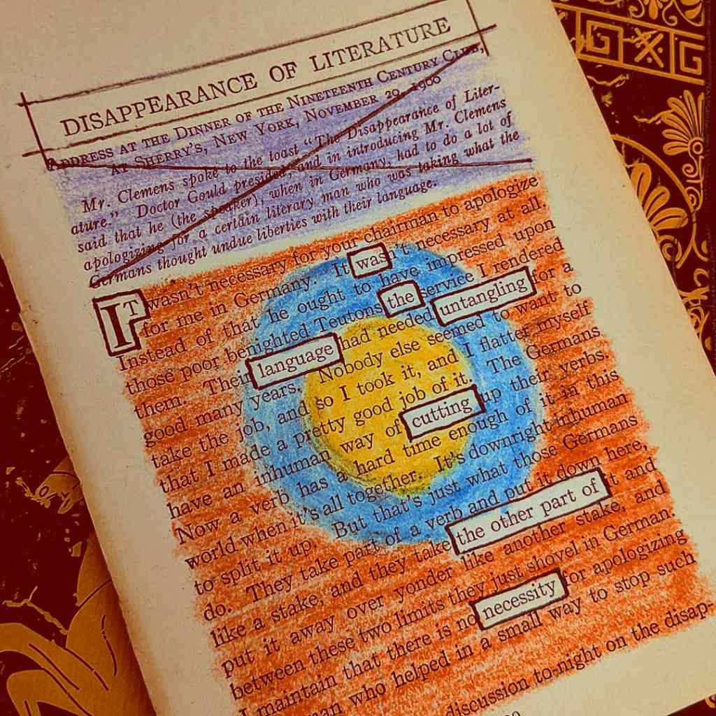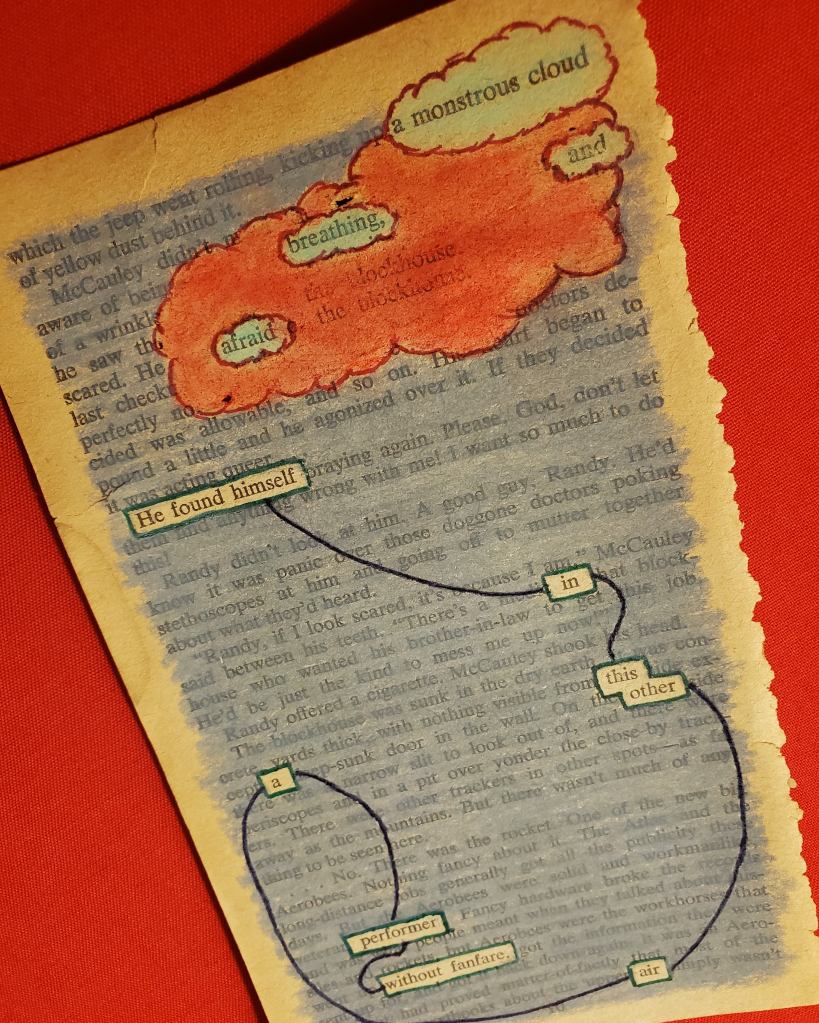 Inspired by the incredible work of Tom Phillips and his Humument, Altered Book Pages are also known as Blackout Poetry, Erasure Poetry and Found Poetry. Part poem, part artwork, they navigate the limitations of a single page of an existing work to find something new.