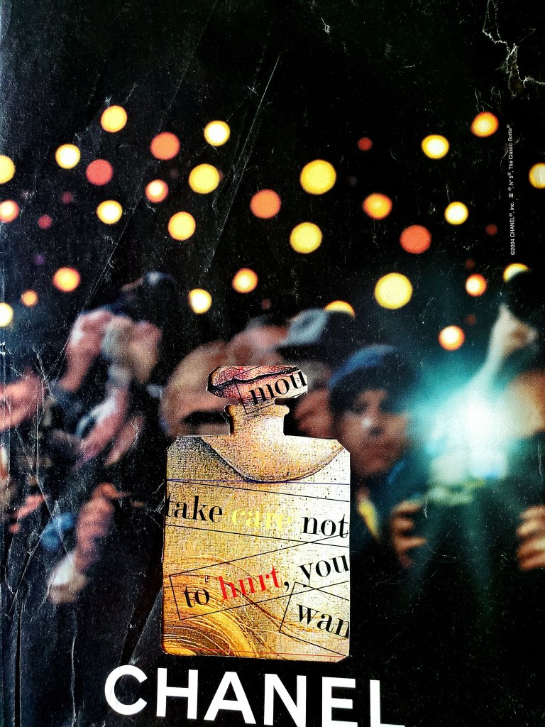 Collage and digital collage: Chanel Ad, Robert Creeley Broadside (Botticelli’s Birth of Venus)