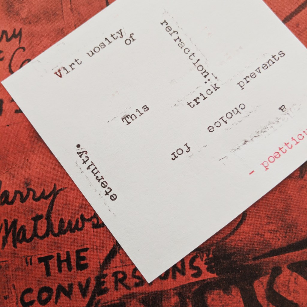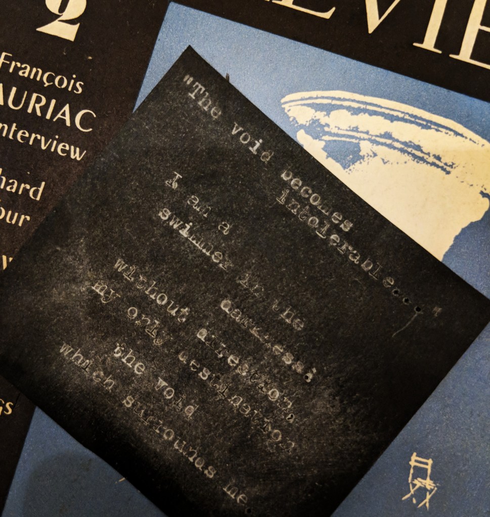 A series of poems inspired by quotes from within the pages of the magazine, each photographed on the cover of the issue that inspired it.